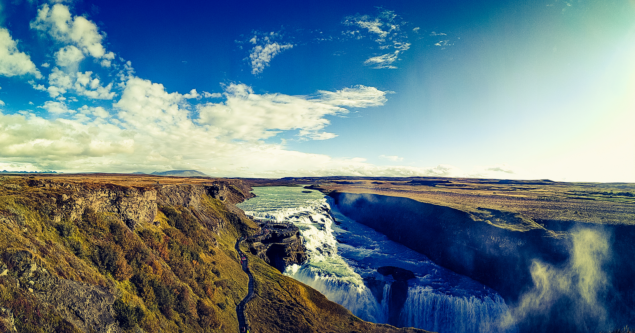 - Gullfoss – dwukaskadowy, przepiękny wodospad (11m i 22m).