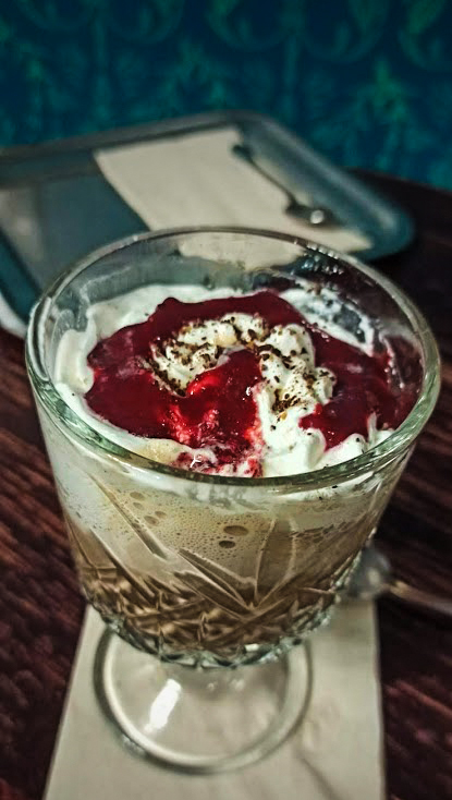 Jak się domyślacie, nie była to nasza jedyna wizyta w tym miejscu. Zawitaliśmy w kawiarni jeszcze kilka razy. Pewnego wieczora, tuż przed wizytą w Szimpla Kert (jednym z najsłynniejszych pubów w Budapeszcie) ponownie wstąpiliśmy na kawę, tym razem wybieraliśmy spośród tych z „prądem”. Zarówno amerykańskie Metropolitan Chocolate Whiskey Latte With Cinnamon jak i francuskie Burgundy Black Forest Mulled Wine Mocaccino po prostu smakowo zwaliło nas z nóg.