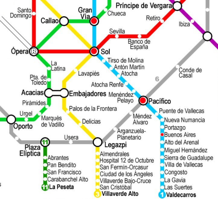 Ze stacji metra np. Sol jedziemy niebieską linią w kierunku Valdecarros. Nasz przystanek to Buenos Aires, a celem jest Parque del Cerro del Tío Pío. Do oddalonego o 5 minut od stacji parku dostajemy się bez trudności.