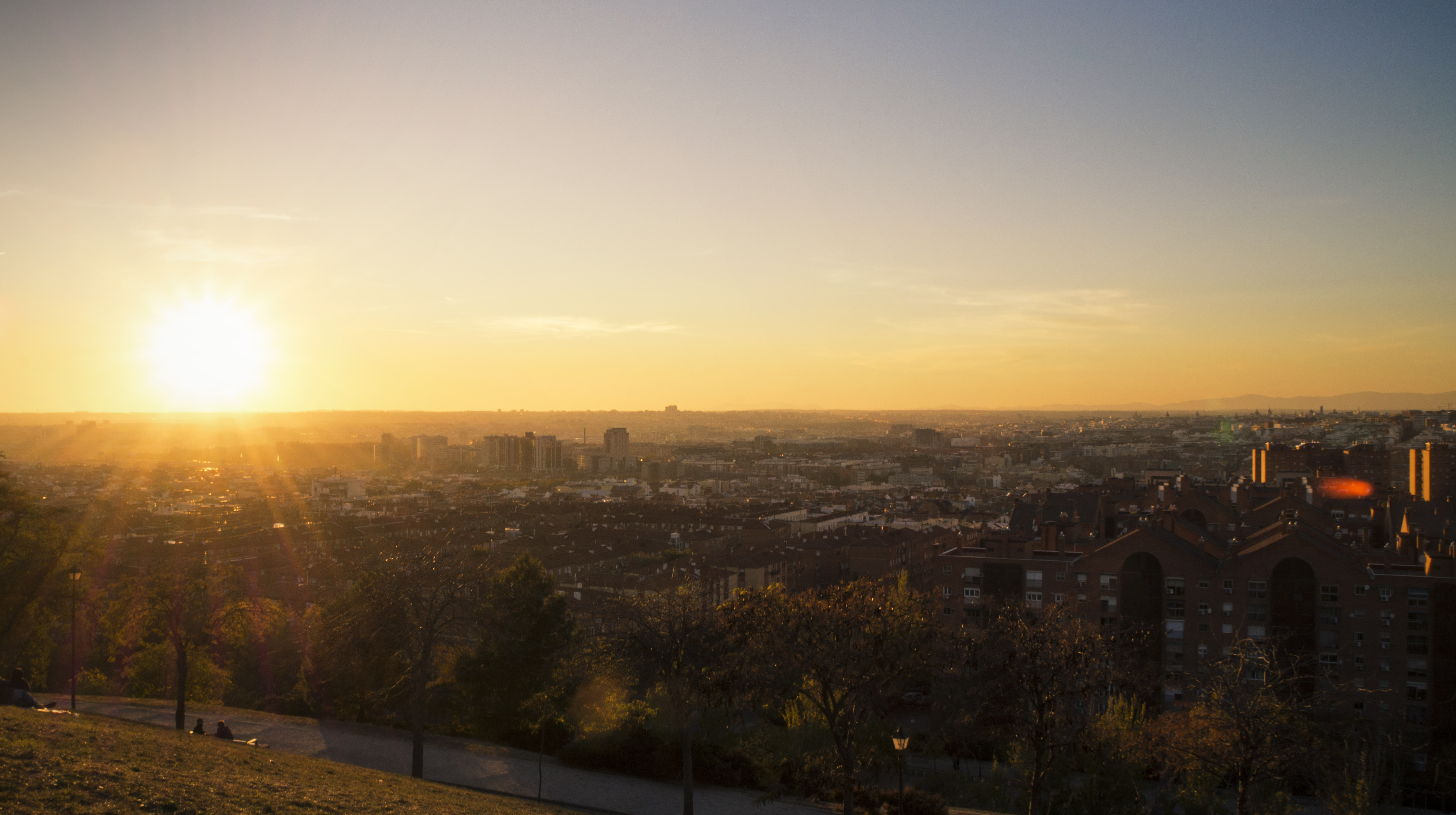 Wdrapujemy się na sam szczyt parku, siadamy na trawie, rozkładamy przekąski, napoje, aparat i czekamy na nieuniknione. Cudowny zachód słońca nad miastem. Na horyzoncie skąpane w ciepłych promieniach „gasnącego” słońca góruje Sierra de Guadarrama. Podczas gdy my rozkoszujemy się widokami, miasto powoli kładzie się do spania… Chwila, co? To miasto nigdy nie śpi, teraz więc po idealnym aperitivo można ruszyć w miasto.