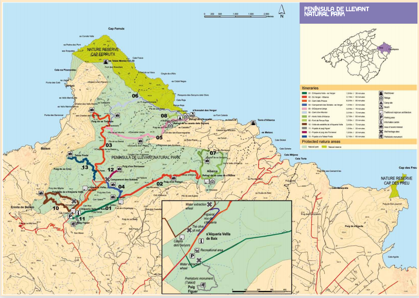Wszystkie szlaki rozpoczynają się na dużym parkingu Parku Naturalnego Levantu, który jest częścią europejskiego programu Natura 2000. Na miejscu znajdziemy dużą tablicę informacyjną, budynek informacji turystycznej (czynny w godzinach: 9:00 – 16:00) darmowe toalety oraz wszystkie 13 szlaków, które mamy do dyspozycji. By dojść na szczyt Sa Tudosa musimy obrać szlak numer 3. Cała trasa w jedną stronę zajmuje od 1,5 do 2 godzin. By nie wracać całkowicie tą samą trasą, w miejscu gdzie łączą się szlaki 3, 4 i 12 obrałem ścieżkę z numerem cztery, a następnie kierując się w stronę parkingu wróciłem zielonym szlakiem z numerem 1. Szlak przyjemny i prosty, poza kilkoma odcinkami lasu, głownie idzie się po drodze dojazdowej na szczyt.