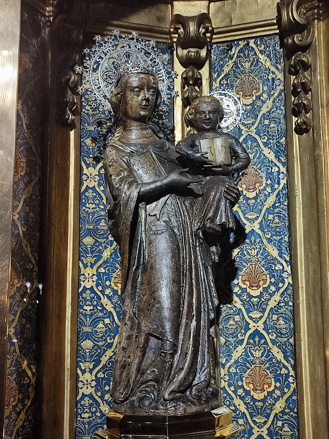 Legenda głosi, że pasterz i mnich znaleźli wizerunek Matki Boskiej z Lluc na skalistym terenie obok strumienia , który przepływa za obecną zakrystią sanktuarium . Tego samego dnia figura została przeniesiona do oratorium w Sant Pere d’Escorca, wówczas siedziby parafii. Kiedy następnego dnia mieszkańcy przybyli, aby ją uczcić, zniknęła i została ponownie znaleziona w pobliżu miejsca, w którym została odnaleziona po raz pierwszy, nieopodal strumienia. Fakt, że zdarzyło się to jeszcze dwa razy, jest powodem, dla którego mieszkańcy tego miejsca zbudowali małe oratorium, a następnie pierwsze budynki kompleksu klasztornego właśnie w tym miejscu.