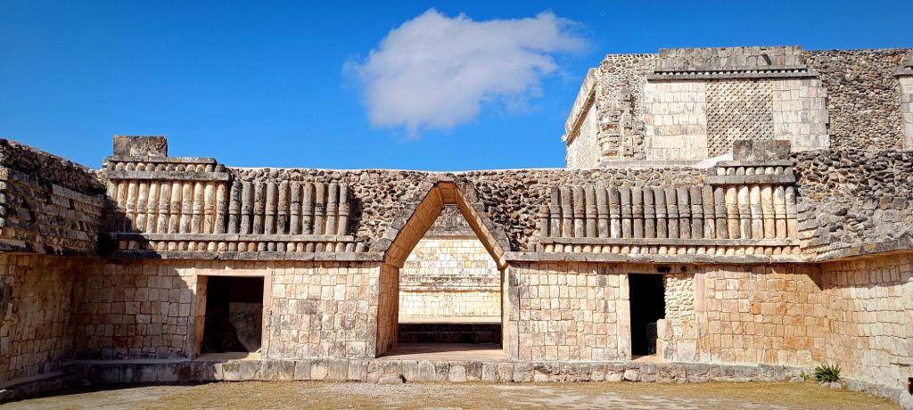 Uxmal to jedno z sześciu majestatycznych ruin Majów, położonych na trasie Puuc (inne to Kabah, Sayil, Xlapak, Labná, Oxkintok oraz dwie jaskinie: Calcehtok i Loltún). Już od pierwszych chwil wizyty w Uxmal jesteśmy oszołomieni ogromem fascynujących budowli. Spacer wśród monumentalnych obiektów, takich jak El Palacio del Gobernador czy El Cuadrángulo de las Monjas – z ich pięknymi zdobieniami i unikalnym układem – przenosi nas w cudowną podróż w czasie. Chociaż Uxmal znajduje się nieco z dala od popularnych ośrodków turystycznych, to wizyta w tym miejscu i okolicy z pewnością wynagrodzi nam podróż. Uxmal leży w stanie Yucatán, około 80 kilometrów na południe od Meridy. Planując podróż do Uxmal, warto rozważyć zatrzymanie się w Meridzie, stolicy stanu Yucatán.