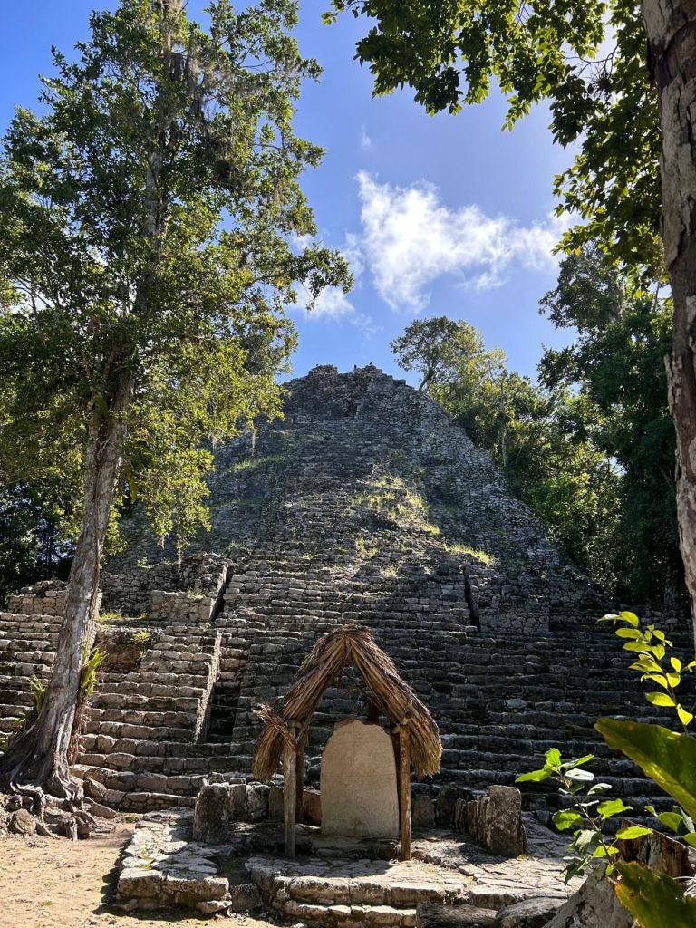 Coba urzekło mnie wyjątkowo. Całe stanowisko archeologiczne jest zanurzone w zieleni drzew. Już przed samym wejściem czuć powiew leśnej duchoty, co dodatkowo pobudza wyobraźnię. W powietrzu unosi się zapach historii. Najwyższa „piramida” na całym Jukatanie, dumnie wznosi się 42 metry w górę, przełamując linie gęstej dżungli. Dodatkową atrakcją mogą być leżące w bliskim otoczeniu ruin jeziora, w których żyją krokodyle.