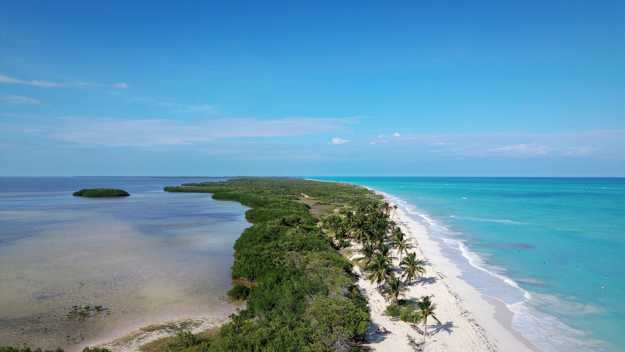 Choć nazwa Isla Blanca sugeruje wyspę, w rzeczywistości to wąski, długi cypel rozciągający się na północ od Cancún. To miejsce z pewnością zasługuje na miano jednej z najpiękniejszych plaż Jukatanu – szczególnie dla tych, którzy szukają ciszy, przestrzeni i dzikiego krajobrazu.