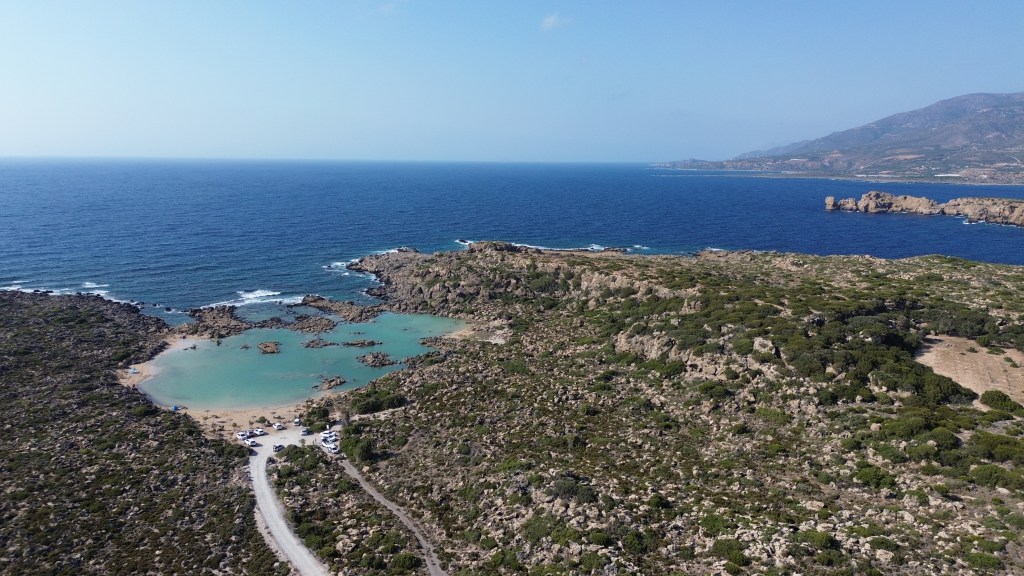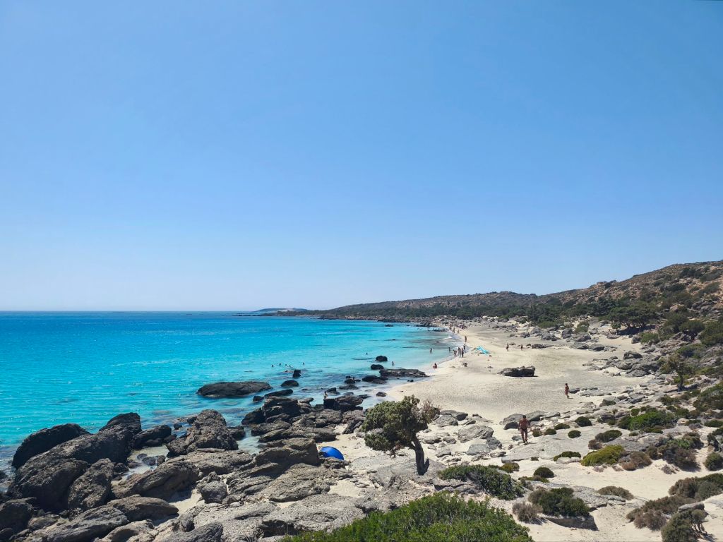 Moim zdaniem to jedna z najpiękniejszych plaż na zachodnim wybrzeżu Krety. Długa, piaszczysta, z pasem drzew dających przyjemny cień i z wodą w odcieniach lazurowego błękitu. Położona zaledwie 10 minut jazdy od Elafonisi, a jednocześnie odwiedzana przez o wiele mniej turystów – nawet o 90% mniej! Od parkingu czeka nas około dziesięciominutowy spacer. Na miejscu nie znajdziemy żadnej infrastruktury, poza niewielką kantyną tuż przed parkingiem..