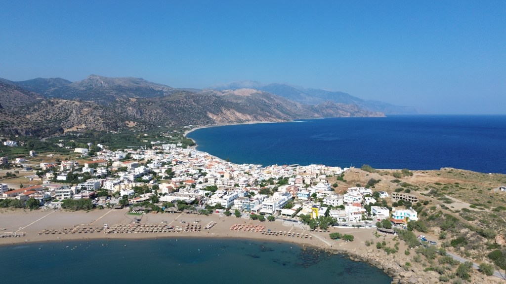 - Stavros – choć w wielu przewodnikach autorzy wychwalają plażę w Stavros to ja osobiście nie widzę w niej żadnego uroku (po prostu duch Antonego Quina wciąż zarabia na utrzymanie wioski).