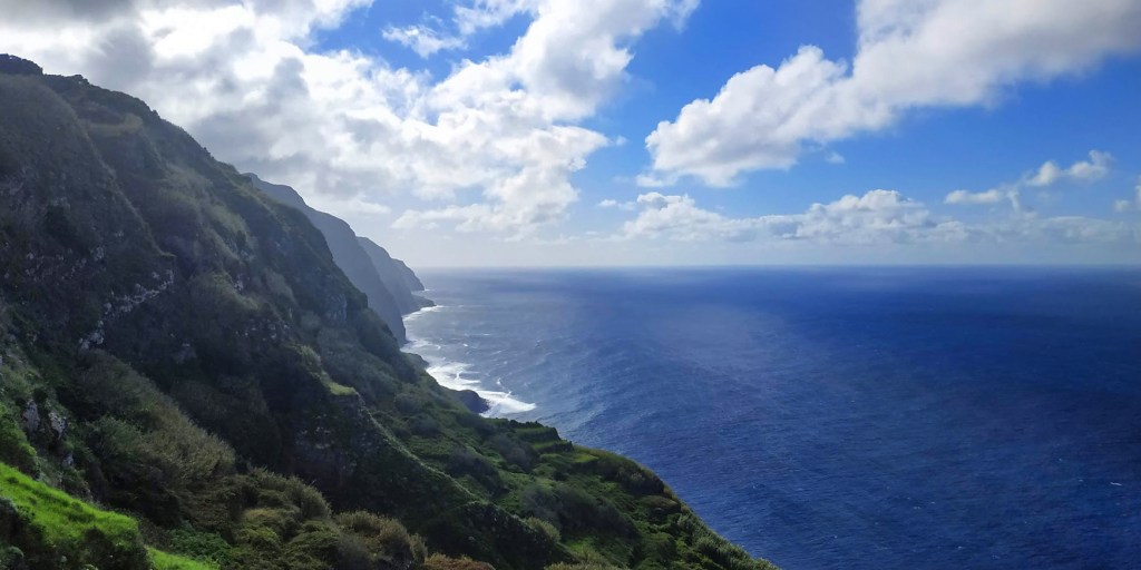 Przenosimy się na najdalej wysunięty kawałek wyspy. tym razem na zachód. Bezkres oceanu. Widok na wysokie, zielone klify. Dźwięk obijających się nisko w dole fal o skały i blask ciepłego słońca padającego na nasze policzki. Jest tam też latarnia usytuowana najwyżej ze wszystkich w całej Portugalii bo na wysokości 392m. n.p.m. Przylądek ten jest zaiste miejscem pełnym relaksu i refleksji. Musicie tu przyjechać!