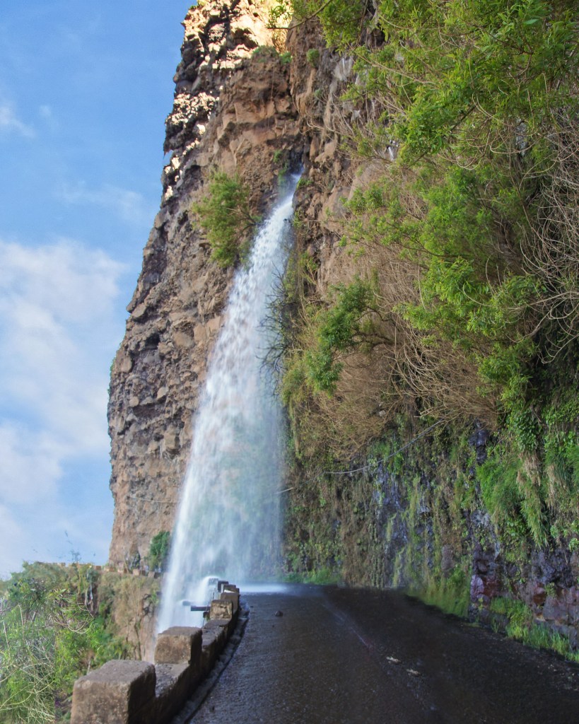 Jadąc wokół wyspy, w pewnym momencie zjeżdżamy z głównej trasy. Eksplorujemy mniej popularne wśród turystów miejsca na wyspie. Znajdujemy wąską drogę prowadzącą wzdłuż oceanu u podnóża klifów. Jedziemy dalej podziwiając piękne widoki i wtedy… zupełnie znikąd na sam środek drogi spada wodospad. Mały, ale mimo wszystko robi to ogromne wrażenie. Później czeka nas jeszcze dosyć ciekawy tunel.