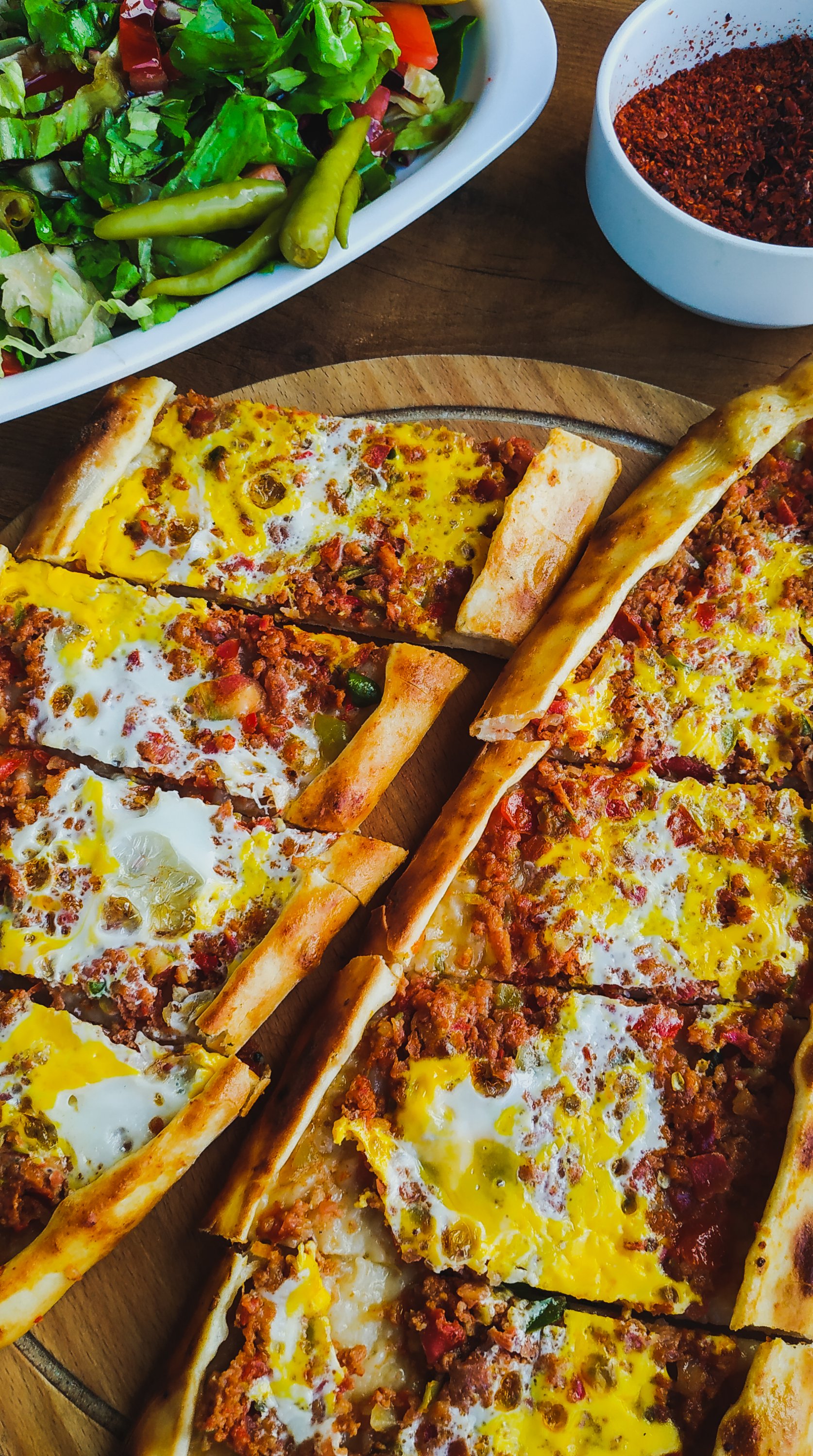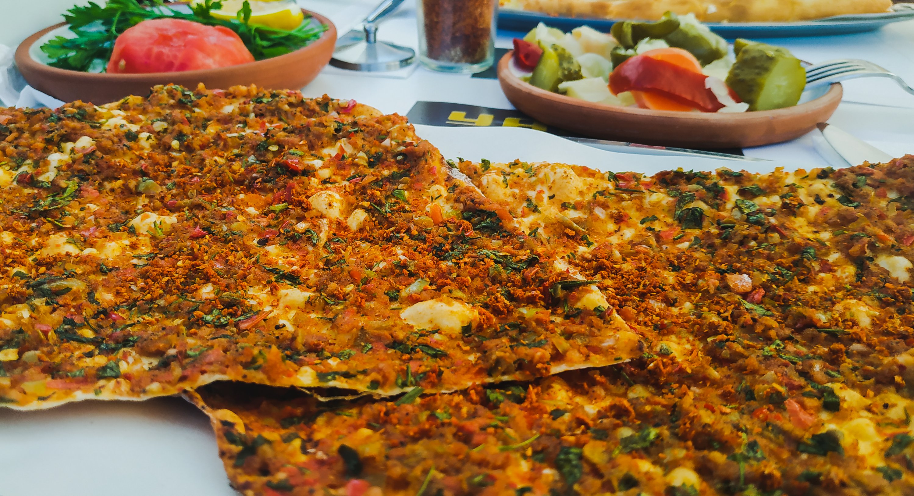 Lahmacun – turecka pizza; tradycyjny, uliczny, turecki fast-food. Składa się z bardzo cienkiego ciasta oraz mięsno-warzywnego nadzienia. Cena 10 -15 lir.
