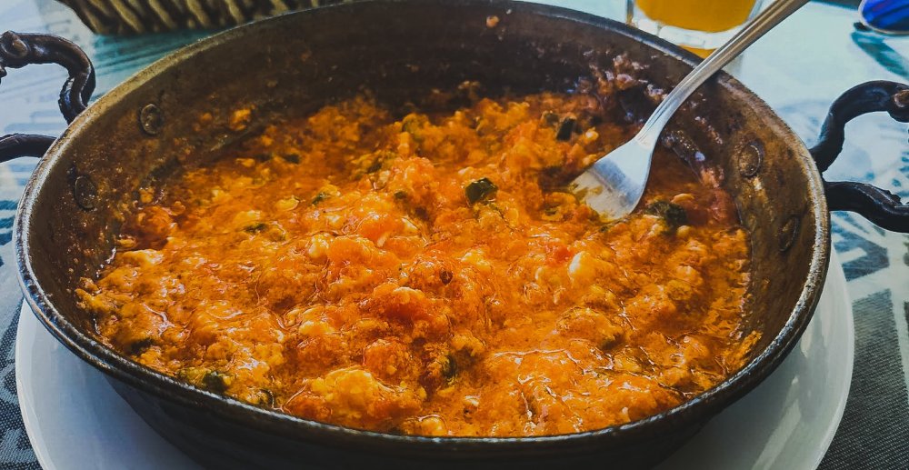 Menemen – turecka jajecznica doprawiona dużą ilością pomidorów, ostrej papryki, często podawana na gorącej patelni z chlebem. Cena 15-25 lir